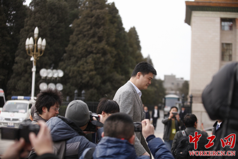 3月12日,全国政协十二届二次会议闭幕会在北京人民大会堂召开。图为全国政协委员姚明步入会场。中工网记者 韩靖摄