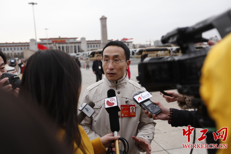 3月12日,全国政协十二届二次会议闭幕会在北京人民大会堂召开。图为全国政协委员巩汉林接受记者采访。中工网记者 韩靖摄