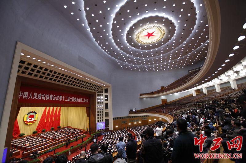 3月12日,全国政协十二届二次会议闭幕会在北京人民大会堂召开。图为闭幕会现场。中工网记者 韩靖摄