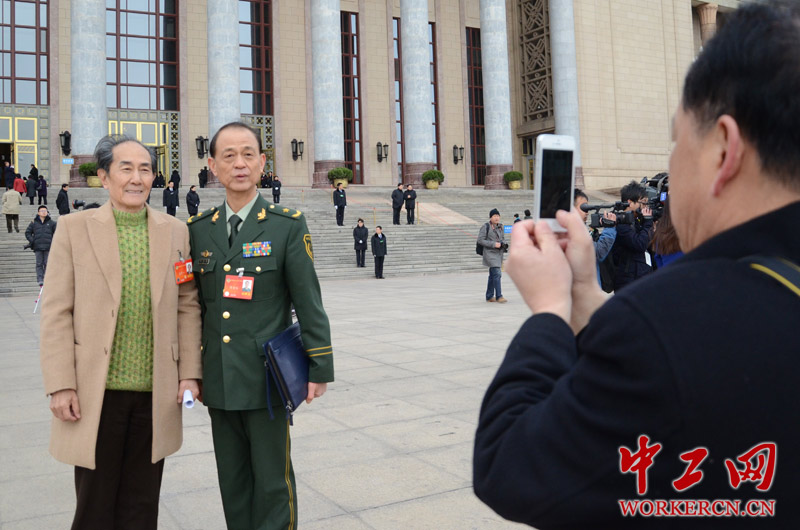 2014年3月12日,全国政协十二届二次会议举行闭幕会,参会委员和大会工作人员纷纷合影留念,许下来年的“春天之约”。 (中工网记者 笑语摄)