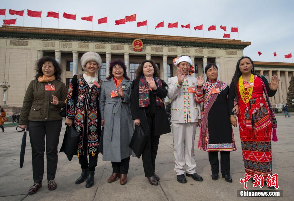 3月12日,全国政协十二届二次会议完成各项议程在北京人民大会堂闭幕。少数民族委员步出会场。中新社发 骆云飞 摄