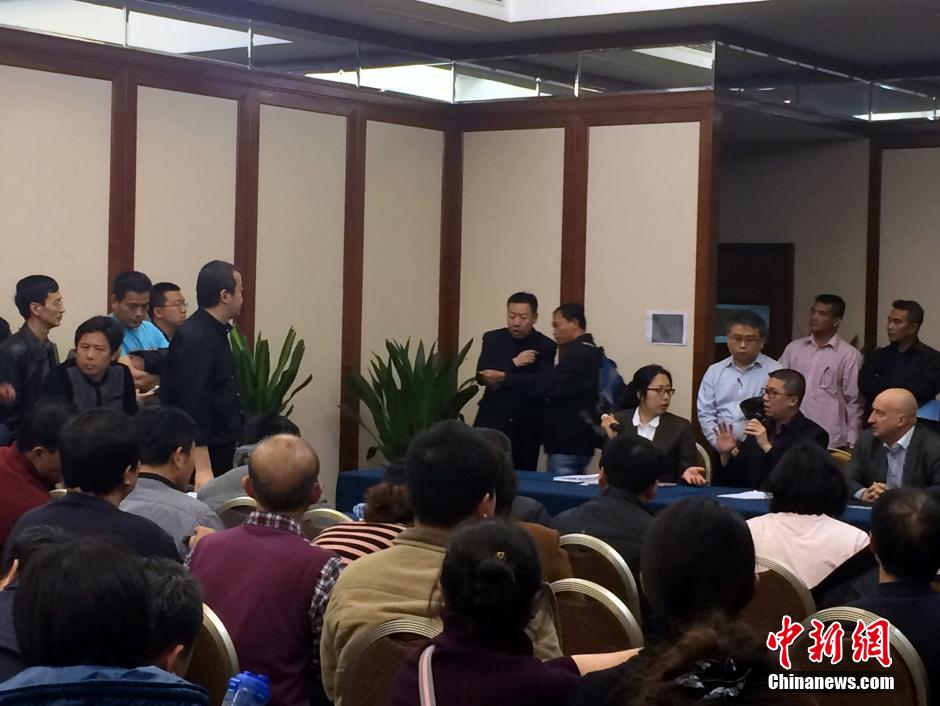 3月12日,马航发言人在北京回应失联乘客家属要求,并表示慰问金将于当日13点进行登记,18点家属可在入住酒店签字领取。马航承诺,该款项不会在日后任何赔偿内扣除。此前,家属认为要签字的文件不严谨。中新社发 李慧思 摄