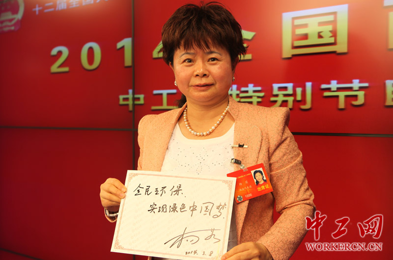 3月8日,全国人大代表杨莉做客中工网演播厅,履职心声:“全民环保,实现绿色中国梦”。 (中工网记者宋晓俐摄)