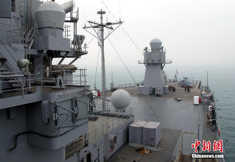 美国海军第七舰队旗舰“蓝岭号”3月12日访问香港,舰上载有超过1400名官兵,排水量超过1.9万吨。舰上载有两架MH-60直升机,以及先进的通信及信息处理系统。美国第七舰队发言人威廉马克思表示,目前有两艘隶属于第七舰队的驱逐舰基德号(USS KIDD)和平克尼号(USS Pinckney)参与搜救行动,搜索区域包括泰国湾及马六甲海峡。中新社发 吴冠雄 摄