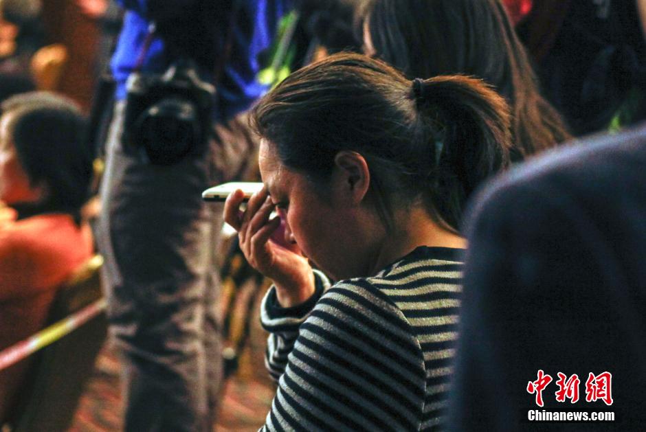 3月21日,北京丽都饭店进行的家属沟通会上,一名家属正在用手机录音。当日,马来西亚驻华大使、皇家空军司令、马民航局飞行管理主管、马航主管飞行业务副总裁等马方高层代表出席沟通会,这是马方代表团首次来华会见家属。中新社发 张浩 摄