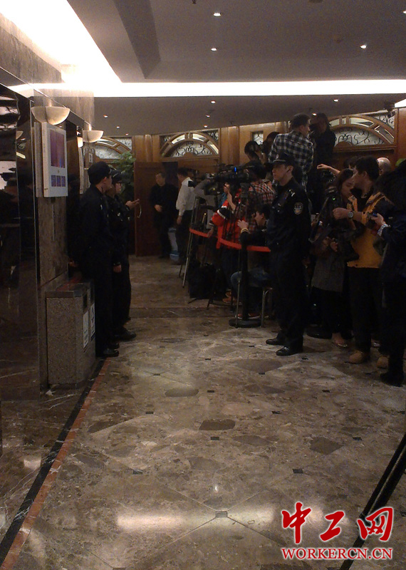 当地时间3月24日晚上10时,马来西亚总理纳吉布召开紧急记者会,称收到的证据显示,飞机在南印度洋坠毁,机上人员无一幸存。部分家属听到噩耗后,悲痛欲绝。图为25日丽都酒店多功能厅附近虽然围满了记者,大家还是会主动让出一条通道,留出空间给工作人员。 中工网记者 杨琳摄