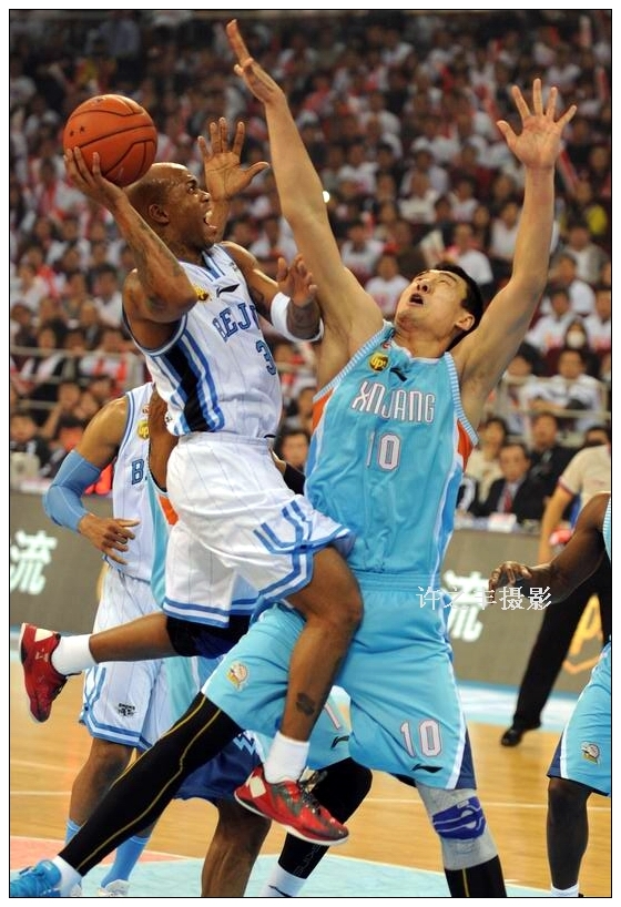 2014年3月26日晚,CBA总决赛第四场比赛,北京队在主场以94比88战胜新疆队,总比分3比1领先赢得冠军赛点。孙悦最后一节两记关键3分球拯救了球队。本场比赛中,北京队莫里斯得到25分8篮板7抢断;马布里得到23分5篮板8助攻;孙悦得到17分3篮板3盖帽;吉喆得到12分6篮板。新疆队哈德森得到27分9篮板3抢断3助攻;辛克尔顿得到10分11篮板;唐正东得到13分5篮板;杨敬敏得到10分7篮板;张庆鹏得到16分2助攻。工人日报-中工网记者许之丰摄影报道