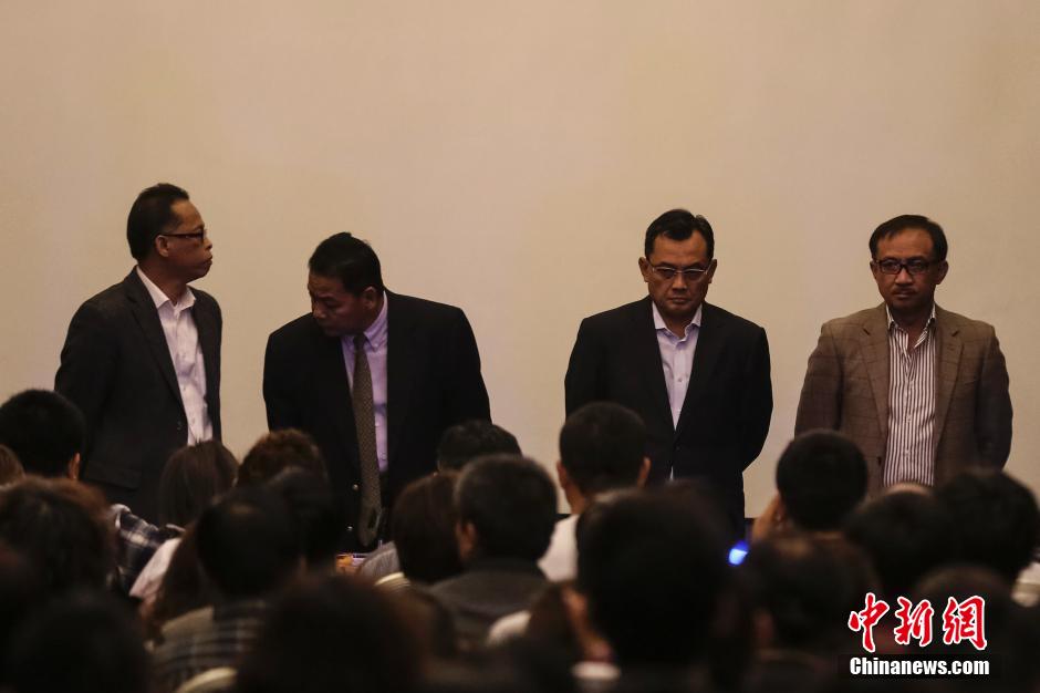 3月27日,马方政府代表出席家属通报会。当日,马航客机失联已进入第20天,马来西亚高级别技术代表团在北京丽都饭店向家属通报情况,马来西亚航空公司代表首次透露,在失联当天曾两次使用卫星电话联系MH370航班,但均未得到回应。中新社发 熊然 摄