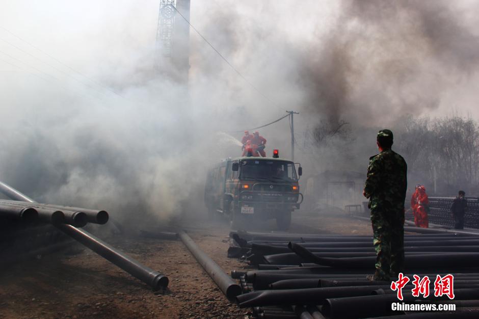 4月3日14时05分,甘肃省张掖市甘州区政府附近一橡胶厂发生火灾。第一时间,消防官兵前往救援,火情目前得到了有效控制,但是由于遇到了沙尘天气,刮起了大风,扑救难度增大,暂时无人员伤亡报告。王瑞欣 摄