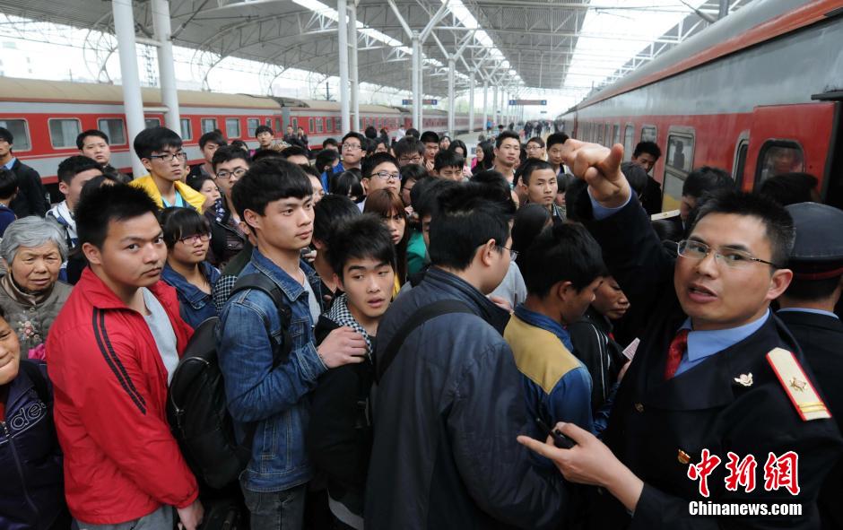 4月7日,大批旅客在江西九江火车站候车室等待进站上车。来自中国铁路总公司的最新统计,清明小长假最后一天,中国铁路预计发送旅客近900万人。针对目前的出行高峰,铁路方面当日总共加开了341列临客,仅长三角地区就加开了100列,珠三角开行京广、广深港高铁达120对,而西南动车组开行对数超过今年春运。 中新社发 胡国林 摄