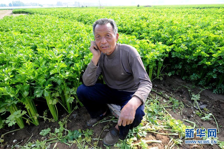 4月14日,中牟县青年办事处邢庄村农民杜进兴面对自家丰收的芹菜愁眉不展。