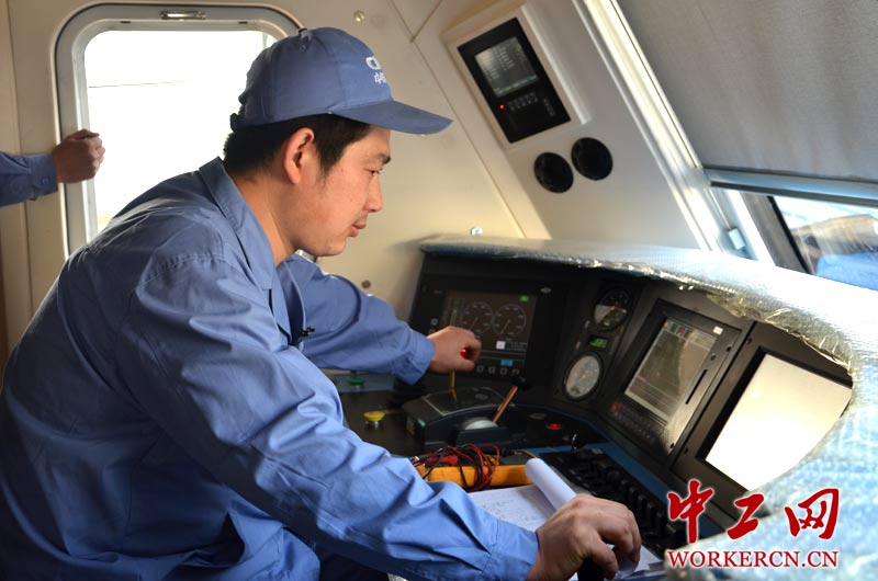 图为张如意在机车上进行调试工作。 (中工网记者 笑语摄)