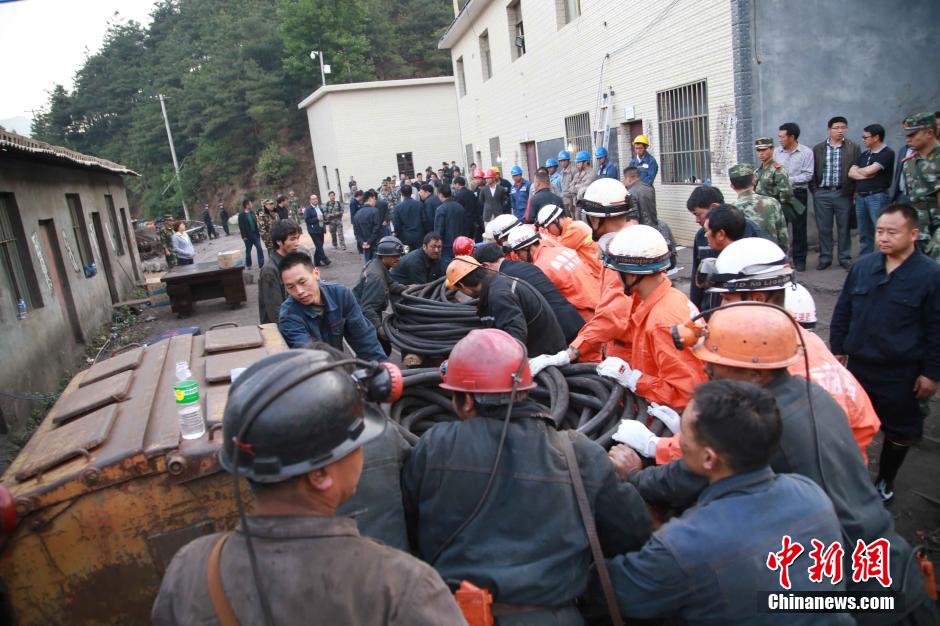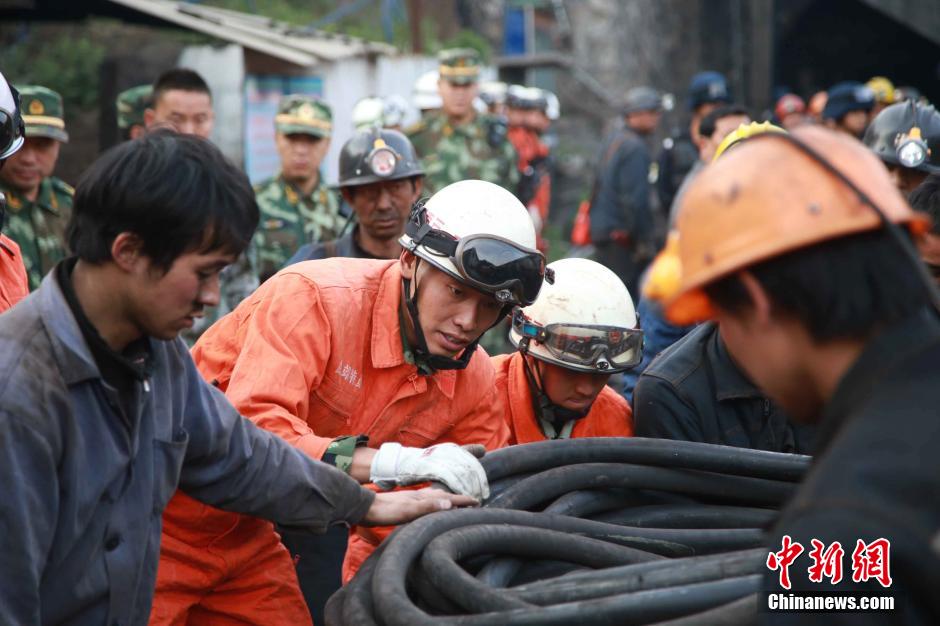 4月21日,搜救工作正在进行。当日凌晨0时30分左右,云南富源县后所镇红土田煤矿121701工作面发生瓦斯爆炸事故。当班井下56人下井,安全升井42人,14人被困井下。截至21日8时,已有13名被困人员遇难,最后1名被困人员正在捜救中。中新社发 赵家荣 摄