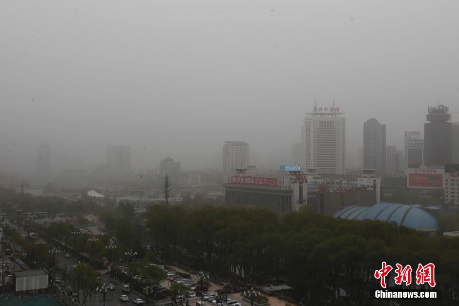 4月24日15时,青海西宁在大风中变得灰蒙蒙。受新疆冷空气影响,从23日夜间开始,青海出现大范围浮尘天气,局部地区出现沙尘天气。24日11时30分,青海省气象台发布大风黄色预警信号,预计未来12小时,青海海西、海北、海南、黄南地区有7至8级西风,西宁、海东地区有6到7级东南风,并伴有浮尘天气。中新社发 罗云鹏 摄