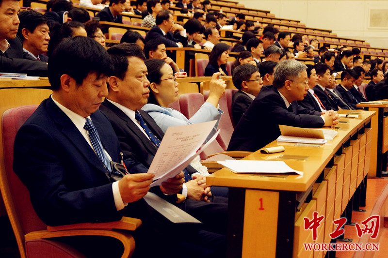 梁伟对各级工会今后工作提出五点要求,一定要加强理论学习,提高认识,深刻领会和贯彻落实党中央重要指示、习近平总书记系列重要讲话精神以及市委和全总的要求,增强政治意识、大局意识和责任意识。一定要建设好劳模和技能人才两支队伍,发挥其示范引领作用,推动首都创新发展;一定要加强工会法制化和制度化建设,强化维权,做实服务,维护和发展好职工的合法权益,促进劳动关系和谐稳定;一定要加强工会服务职工工作体系的社会化、网络化建设,充分发挥工会三级服务体系优势和枢纽型社会组织的聚合引领作用,全面提升我市工会工作水平。图为代表正在认真听会。中工网记者 葛姗 摄