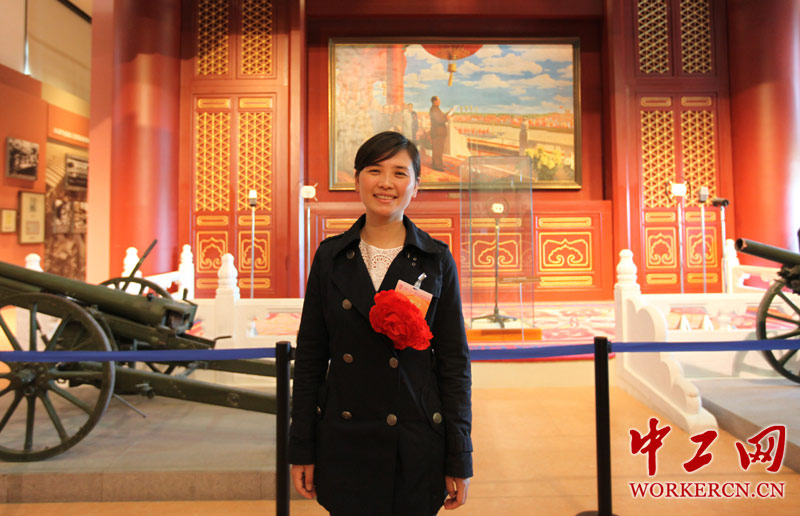 一幅幅鲜艳夺目的大图片让劳模们精神振奋,一路走来,“最美职工”南车长江株洲分公司的易冉,心绪也在发生着改变,“工作中我也会有不耐烦的时候,但是看完这些图片后我不会再有这种情绪了。活动中很多劳模都是我学习的榜样,他们比我付出的更多,我也会不断的创新,做出更多的成绩。”(中工网记者杨灵 摄)