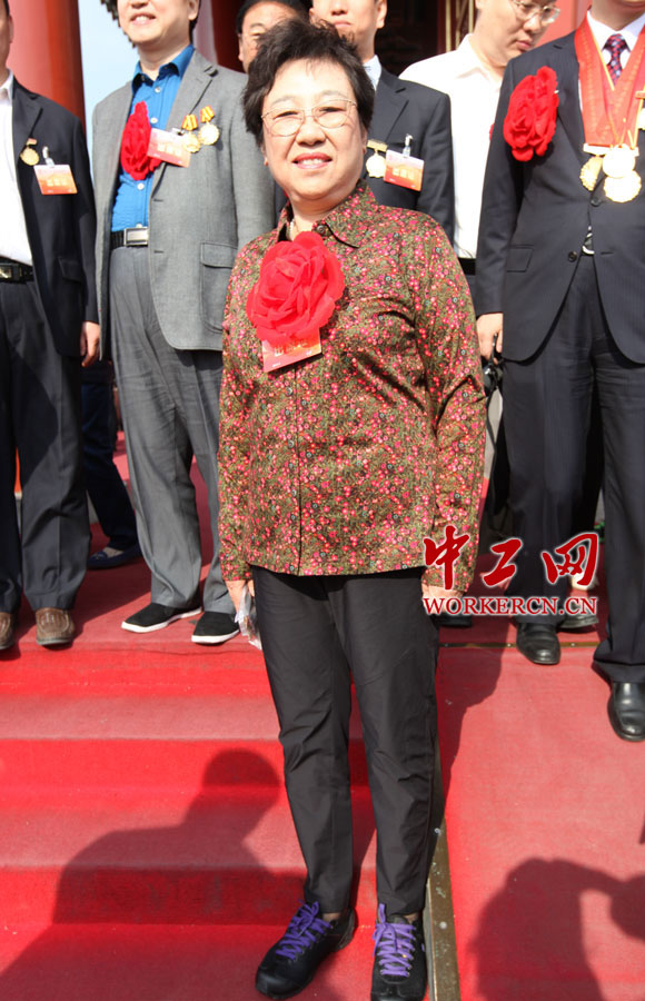 全国劳模、辽宁省金秋医院院长张菊香今年已是75岁,她看到有不少80、90后劳模代表时觉得非常欣慰,她说现在年轻人既有劳动的热情,也有创新的发展思路,敢想敢干,应该向年轻的劳模学习这些。(中工网记者杨灵 摄)