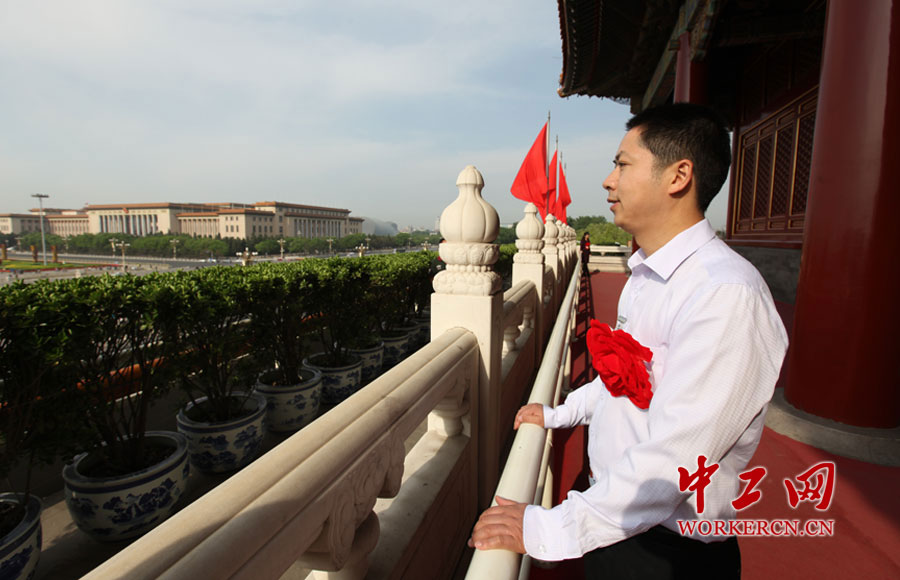 劳动铸造梦想 全国劳模代表参观升国旗仪式