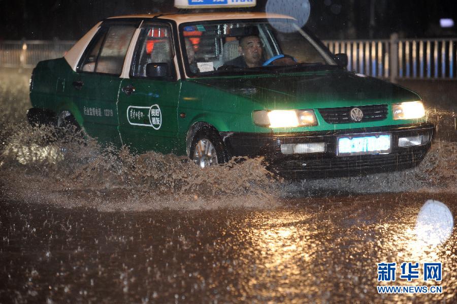 5月10日凌晨,车辆通过贵阳市区的积水路段。 5月9日晚间,贵州多地遭受暴雨冰雹袭击。其中贵阳市主城区出现今年入汛以来首场冰雹,多个路段街道严重积水,部分地区出现临时停电情况,给市民出行、生活造成影响。据贵州省气象部门监测,9日17时至22时,贵州共有43县多个乡镇出现降雨或冰雹,灾情还在进一步核实统计中。气象部门预计,9日夜间至10日,贵州局部地区仍将出现暴雨并伴有雷电大风、冰雹、短时强降水等强对流天气。 新华社记者 陶亮 摄