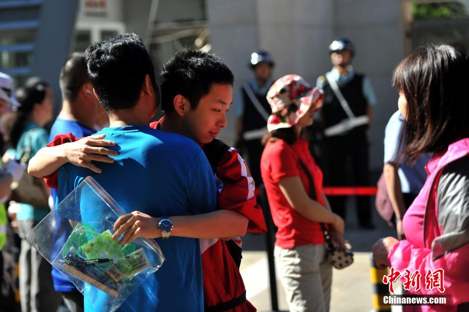 6月7日,2014年普通高等学校招生考试拉开大幕,全国939万考生报名参加此次高考。当日,多地加强了安保力度,北京、南京等多个城市增加民警持枪巡逻。 图为考生步入考场。中新网记者 金硕 摄