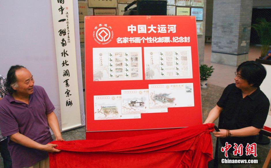 6月23日,在中国大运河的重要节点城市——浙江杭州市,庆祝申遗成功的《运河十景名家书画》个性化邮票及纪念封进行了首发。据悉,纪念封一套3枚,上书“中国大运河正式列入‘世界遗产名录’”。在浙江省内,仅限量发行20000套。中新社发 李晨韵 摄