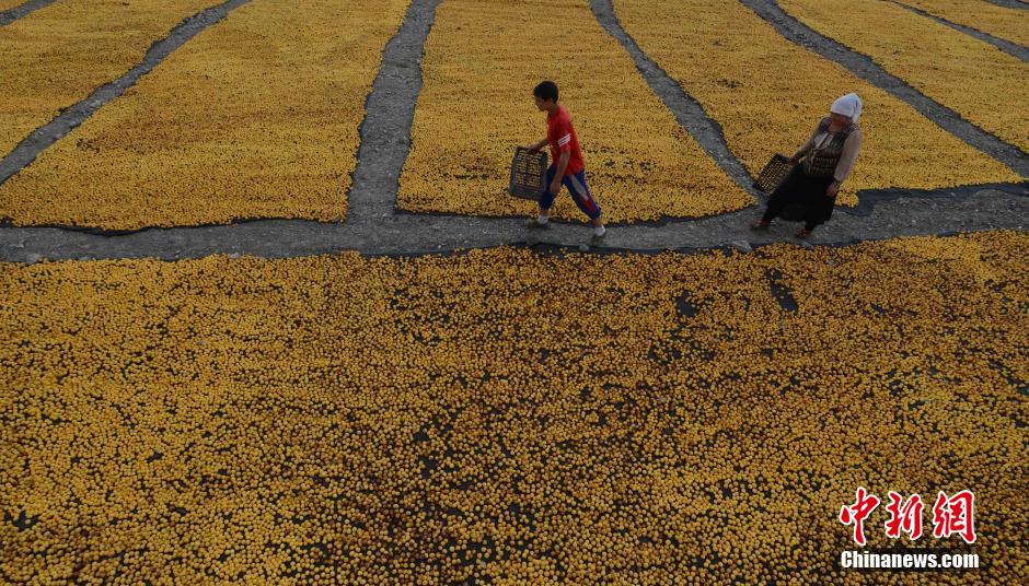 又到一年一度杏子成熟的季节了,6月27日,新疆轮台县铁热克巴扎乡曼曲鲁克村3组农民阿里木·木沙家在沙滩上晾晒杏子。轮台县新疆南疆产杏大县,享有“中国小白杏之乡”的美誉。
