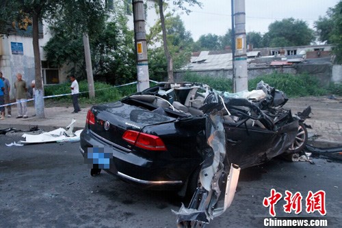 10日凌晨2时50分许,哈尔滨市南岗区清华大街210号路段发生一起轿车追尾货车事故,造成1人当场死亡,1人受伤。目前,事故原因正在进行调查。中新社发 解培华 摄