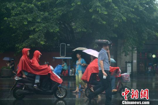 暴雨天气给民众带来诸多不便。 张浪 摄