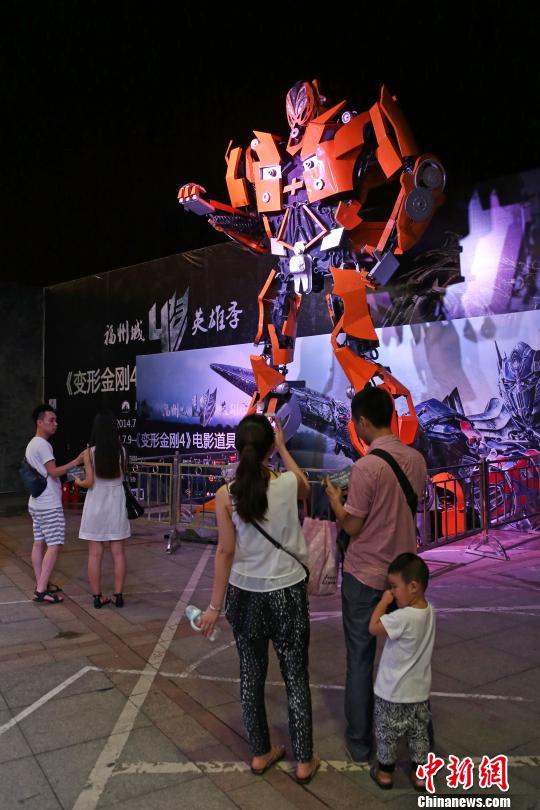 图为父母带孩子来参观变形金刚 李南轩 摄