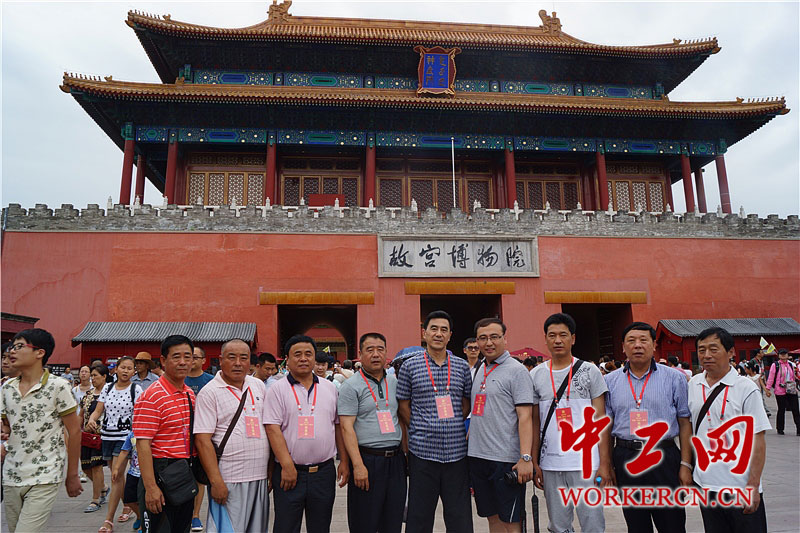 图为来自不同岗位的劳模代表齐聚故宫合影留念。中工网记者 葛姗 摄