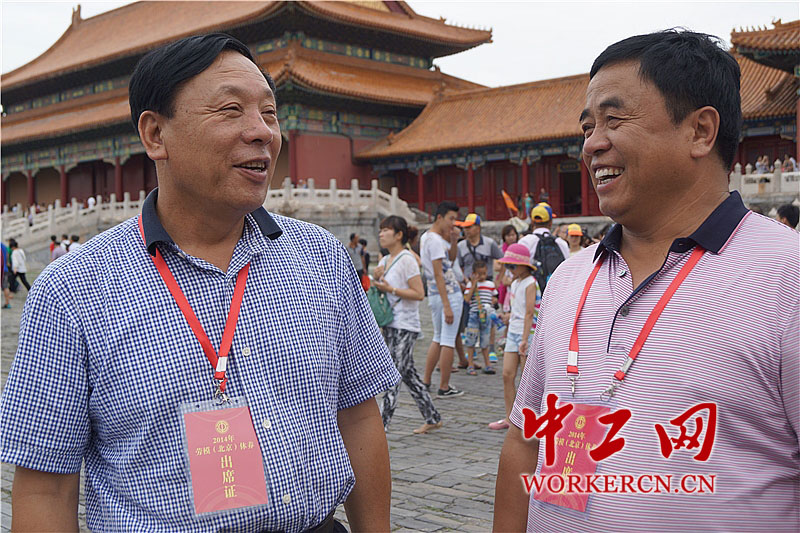 图为来自黑龙江哈尔滨阿城区滨圣养殖基地经理赵连彬正在给同伴讲解故宫典故。中工网记者 葛姗 摄