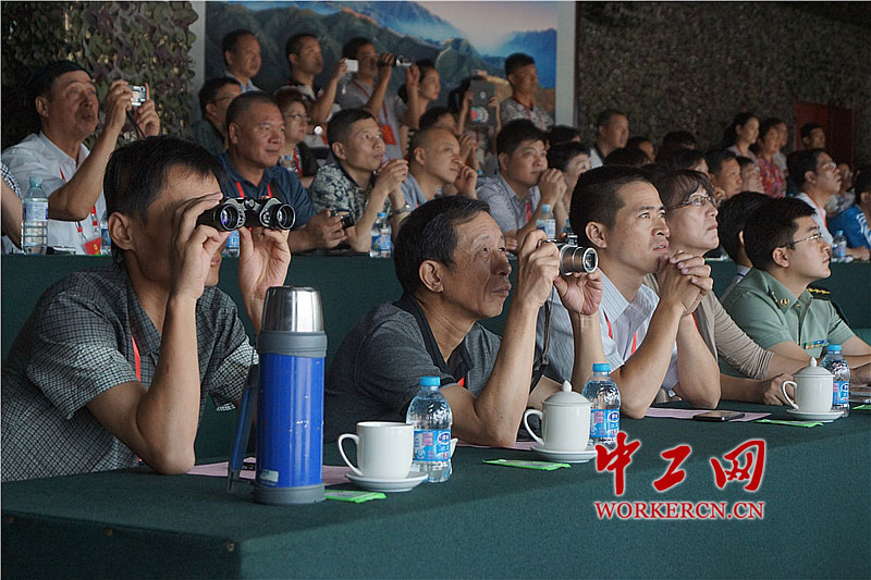 图为参加休养的全国劳模代表在聚精会神地观看军事演习。中工网记者 葛姗 摄