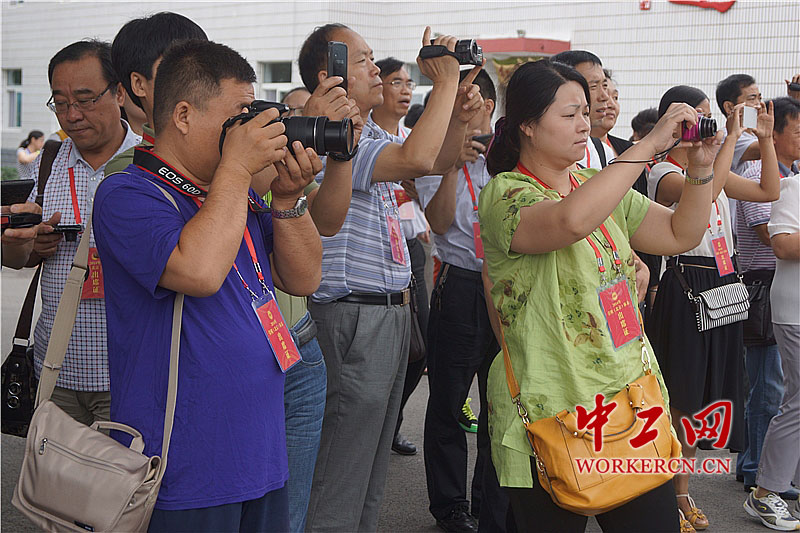 图为精彩的军事演习引得参加休养的全国劳模代表们纷纷拿出相机拍摄。中工网记者 葛姗 摄