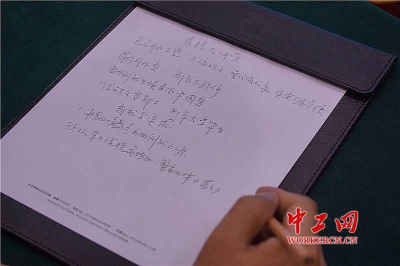 图为劳模代表所做的主题宣讲笔记。 中工网记者 葛姗 摄