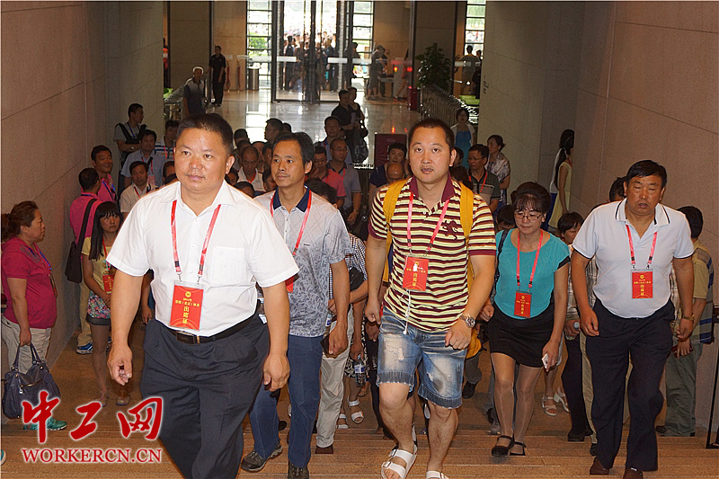 2014年7月24日,200名来自全国各地的劳动模范代表们怀着激动的心情参观了《复兴之路》大型主题展览。800米展线展示了170年的中国近现代史,一代代中华儿女奋斗的足迹在748幅图片里浓缩。 中工网记者 葛姗 摄
