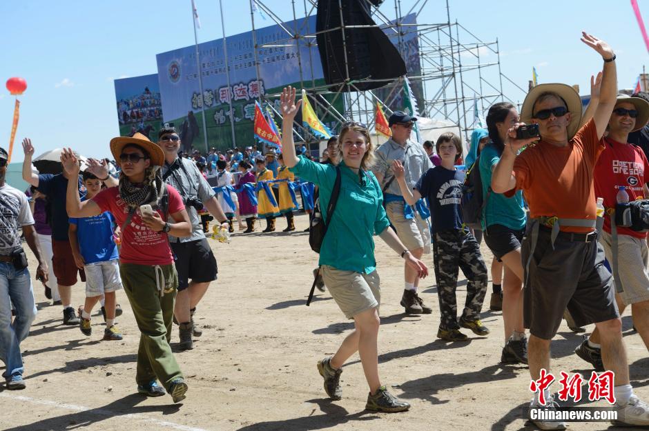 7月25日,盛装的蒙古国姑娘展示传统服饰。当日,内蒙古自治区第25届旅游那达慕在乌兰察布市四子王旗开幕,在为期一周的那达慕上,除了传统搏克、赛马、射箭比赛项目以外,还将举办草原美食啤酒节、蒙古族长调演出、制作马奶酒与3D艺术画展等活动。中新社发 刘文华 摄