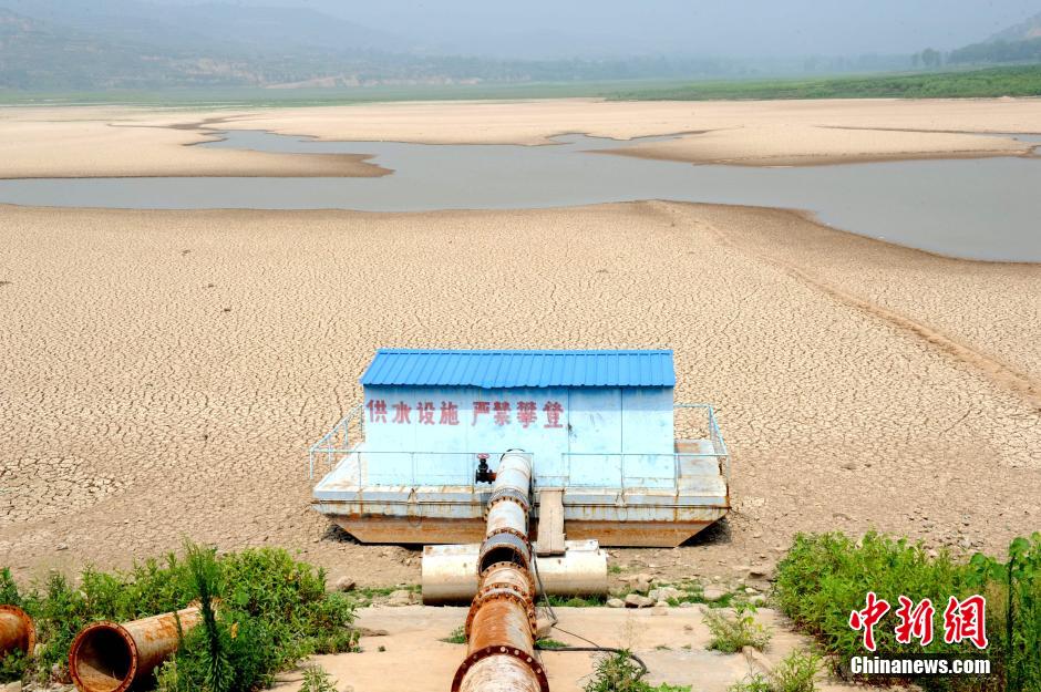 8月1日,陕西三原县冯村水库几近干涸。7月以来,陕西关中、陕南地区出现持续高温,为1961年以来温度最高的年份,陕西省水文局连续发布枯水预警。当前旱情已严重影响秋粮作物正常生长,部分地区玉米出现绝收现象。据最新资料分析,当地干旱程度将进一步加剧。图为陕西三原县冯村水库大片裸露的土地。张远 摄