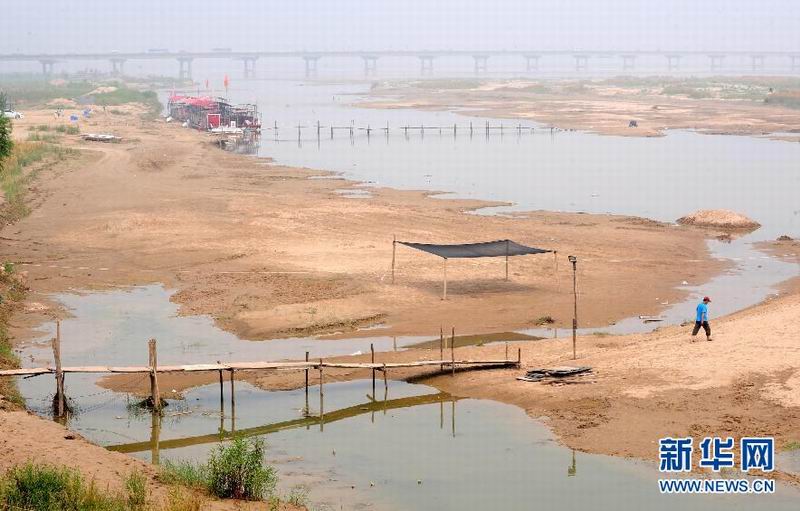 黄河干流来水量不足,郑州黄河花园口段大面积河床裸露(8月2日摄)。受持续高温天气、降水不足等因素影响,河南局部地区旱情严重,黄河干流来水偏少。日前,河南黄河河务局启动Ⅲ级抗旱应急响应,实施黄河小浪底、西霞院水库联合调度,加大黄河水下泄流量,根据抗旱用水需求及时调整配置有限的黄河水资源。目前,河南全省约有3000万亩农田受旱。新华社记者 朱祥 摄