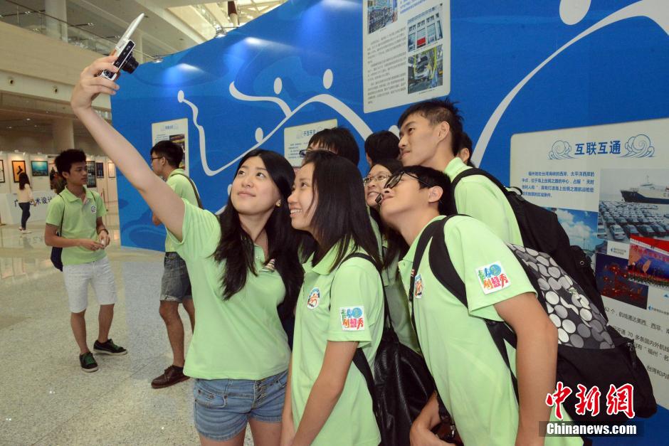 8月10日,正在福州举行的第二届海峡青年节,秉持“两岸一家亲”理念,以“中国梦?中华情”为主旋律,以“海丝起点,青春启航”为主题,安排大会、文化交流、公益交流等16项活动,邀请了1800多名两岸青年共同参加,其中台湾青年约800人。当日,在福州海峡国际会展中心举行的两岸青年文化创意展、中华传统文化体验展,每个展品都闪烁着两岸青年的创新思维,吸引众多两岸青年代表观展。图为参加“青春创想秀”暨两岸大学生公益社团活动的台湾大学生激情飞扬。 刘可耕 摄