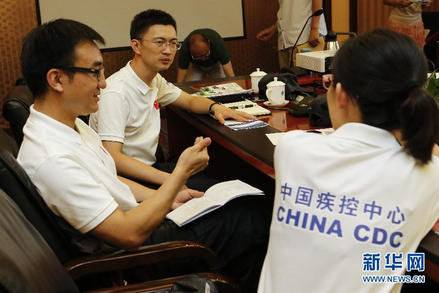 图为8月10日,公共卫生专家组成员在赴非公共卫生专家组行前培训会上交流。