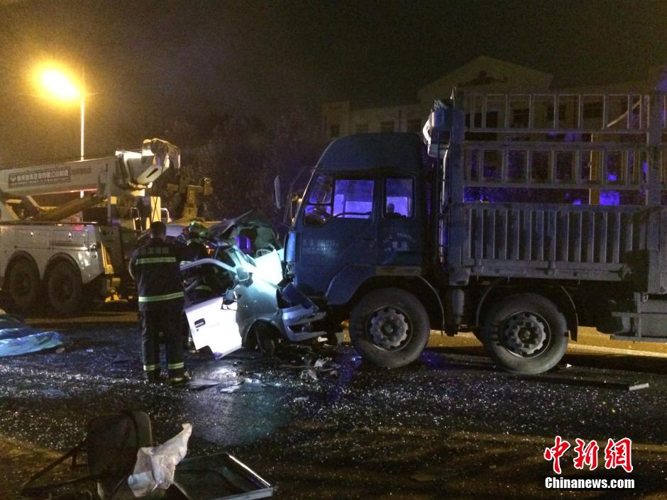 11日22时许,哈尔滨老机场路姜家屯附近路段发生一起重大交通事故,一辆微型面包车和一辆货车相撞,面包车上8人当场死亡,事故原因正在调查中。 中新社发 解培华 摄