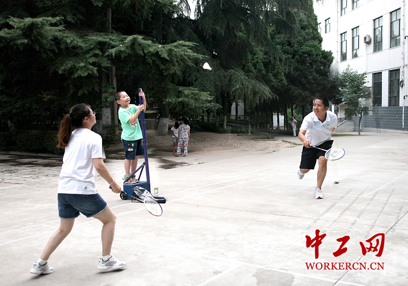 吃过晚饭,白芝勇一家人来到小区对面的公园,一家人打起了羽毛球,白芝勇说,他最享受的就是一家人在一起。 中工网通讯员李先 摄