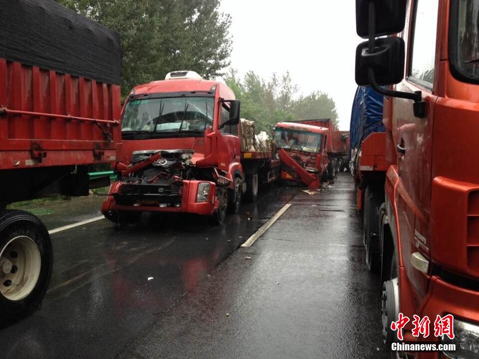 8月13日凌晨2点30分左右,安徽合六叶高速叶集往合肥方向747公里处发生6车连环相撞,造成至少6人重伤,多人轻伤,目前事故还在处理之中,图为六安消防救援中。 中新社发 张娅子 摄