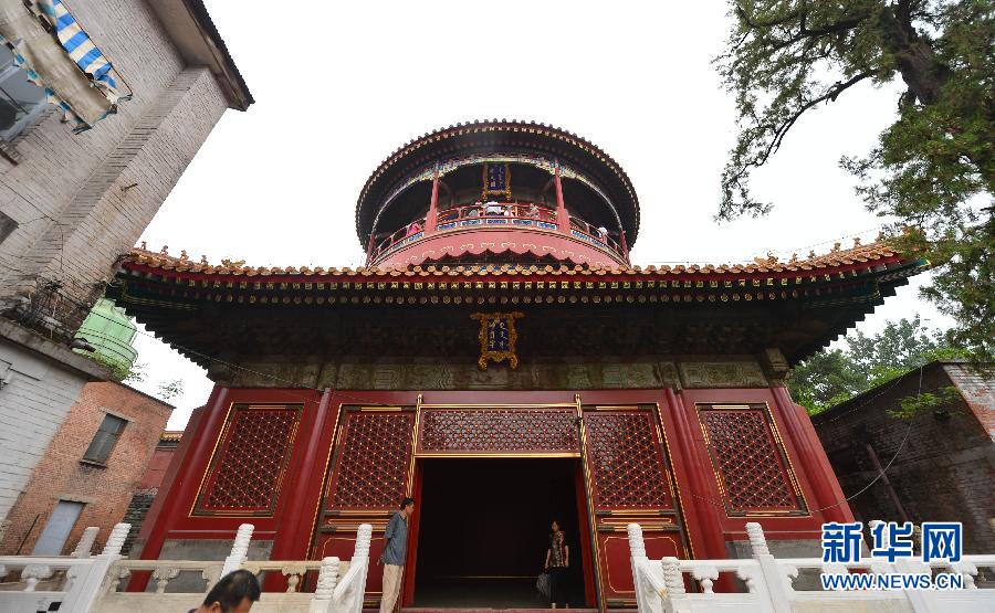 这是大高玄殿建筑群中已修复完工的乾元阁(8月13日摄)。 8月13日,尘封60余年的故宫大高玄殿首次面对媒体和古建专家开放。故宫博物院院长单霁翔表示,大高玄殿建筑群将边修缮边开放,预计2016年修缮完成。届时这里将成为重要文化场所,为市民提供展陈服务,并配有数字博物馆和文化广场。目前,大高玄殿建筑群中乾元阁已经修复完工,第二期修缮方案正待有关部门审批,预计今年年底前有望启动。大高玄殿始建于明嘉靖二十一年(1542年),明万历至民国以来曾多次重修,是明、清两代皇家的御用道观,也是故宫的重要组成部分。 新华社发