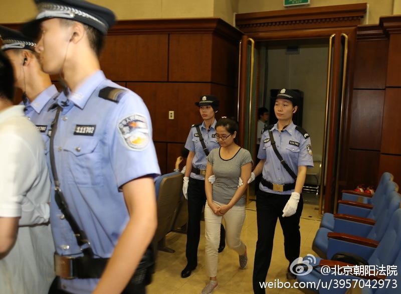 据北京市朝阳法院官方微博消息,2014年8月14日8时30分,被告人杨秀宇、卢梅被提押至法院。检察官将本案109本卷宗搬至法庭,开庭前各项准备工作正在有序进行中。 图片来源:北京市朝阳法院官方微博