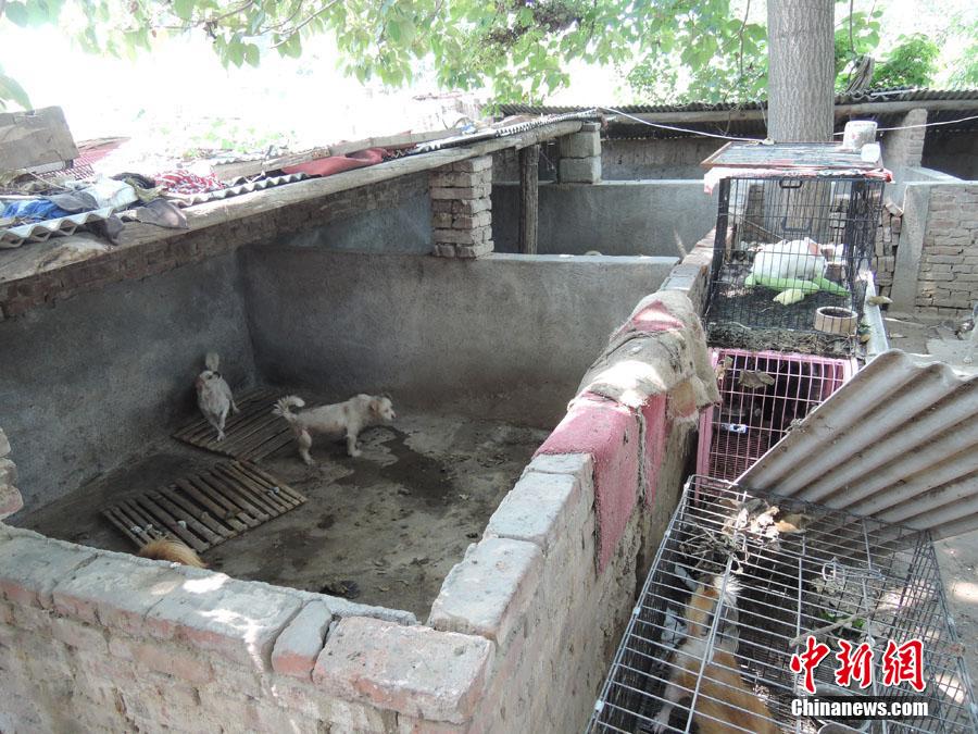 大树下低矮、简陋的狗舍是流浪动物们最安全的家。 韩章云 摄