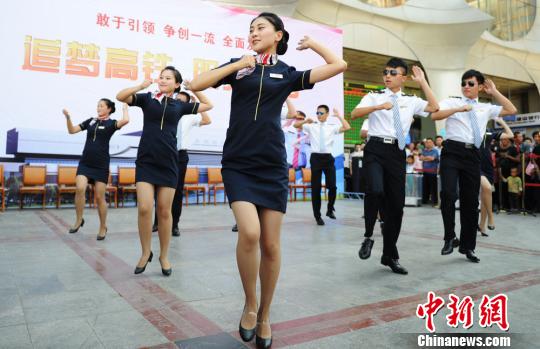 据兰州火车站工作人员介绍,随着兰(兰州)新(新疆)客专建设进入收尾阶段,兰州铁路局即将跨入高铁时代,兰州火车站工作人员以快闪舞蹈、才艺、形象展示等多种形式,展示铁路客运窗口良好形象,并对社会承诺将以高铁标准提升客运服务质量,让广大旅客温馨舒畅出行。