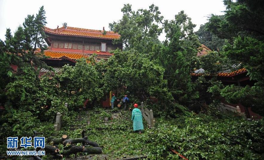 8月18日,工作人员正在清理压垮岳麓书院大成殿的古树树枝。当日下午,长沙岳麓书院内一株古树倒向院内建筑大成殿,导致部分殿体垮塌,造成一人死亡两人受伤,其中死者为游客。 李尕 摄 图片来源:新华网