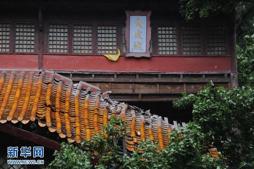 8月18日,工作人员正在清理压垮岳麓书院大成殿的古树树枝。当日下午,长沙岳麓书院内一株古树倒向院内建筑大成殿,导致部分殿体垮塌,造成一人死亡两人受伤,其中死者为游客。 李尕 摄 图片来源:新华网
