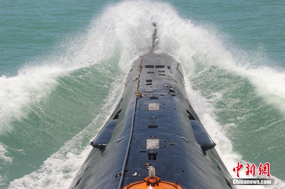 8月中旬,中国海军南海舰队某潜艇支队在南海某海域进行海上训练。该支队官兵立足现有装备,全程采取“背靠背”的对抗方式,坚持在各种复杂气象海况下临机组织训练,先后圆满完成了打击敌水面编队、护航警戒、潜伏待机、艇机协同、夜间突击等科目的训练。图为某型潜艇高速向目标海域航行,并发射鱼雷,一举摧毁目标。